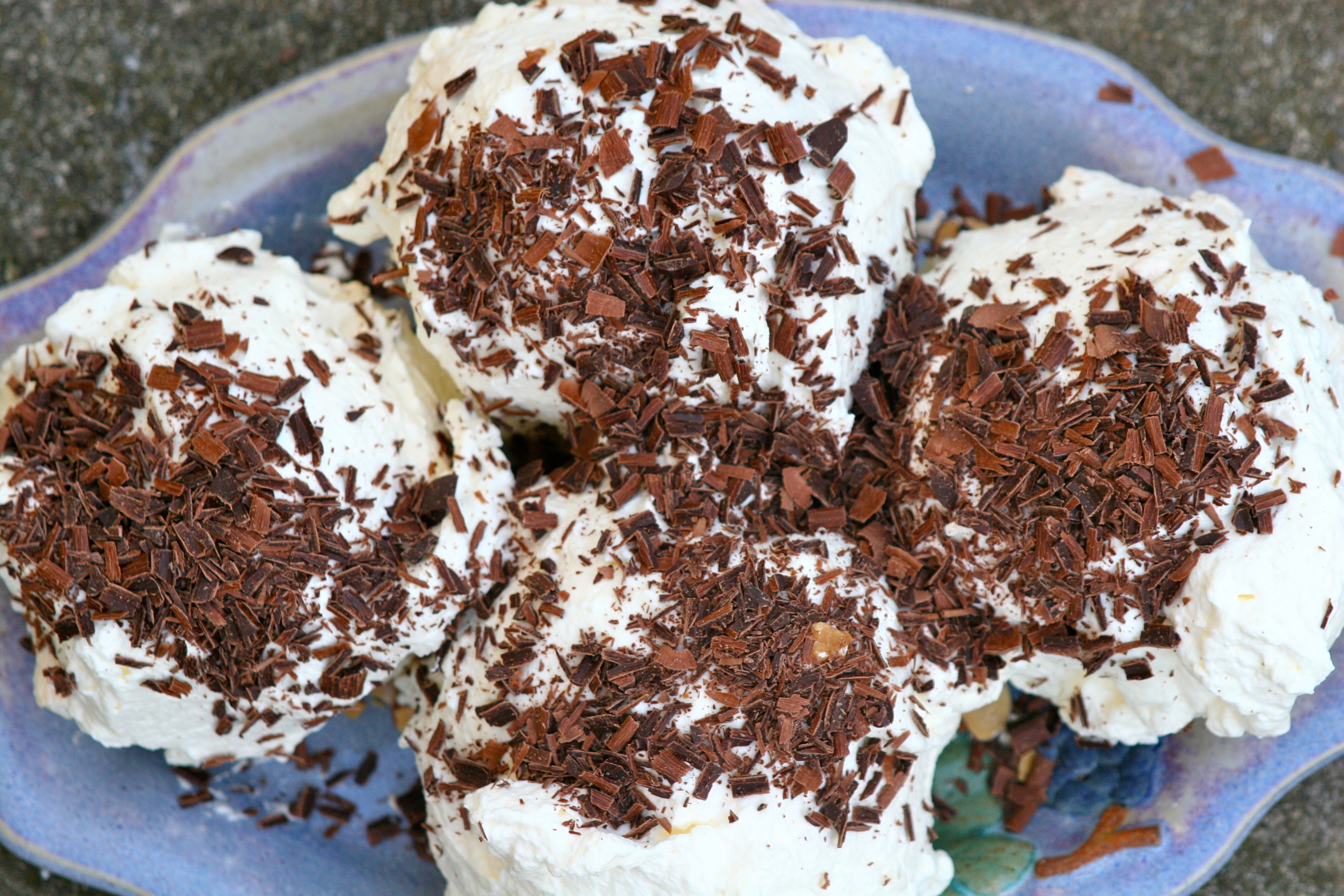 Chocolate shavings to taste (do with a potato peeler or a very sharp paring knife), about 3/4 cup