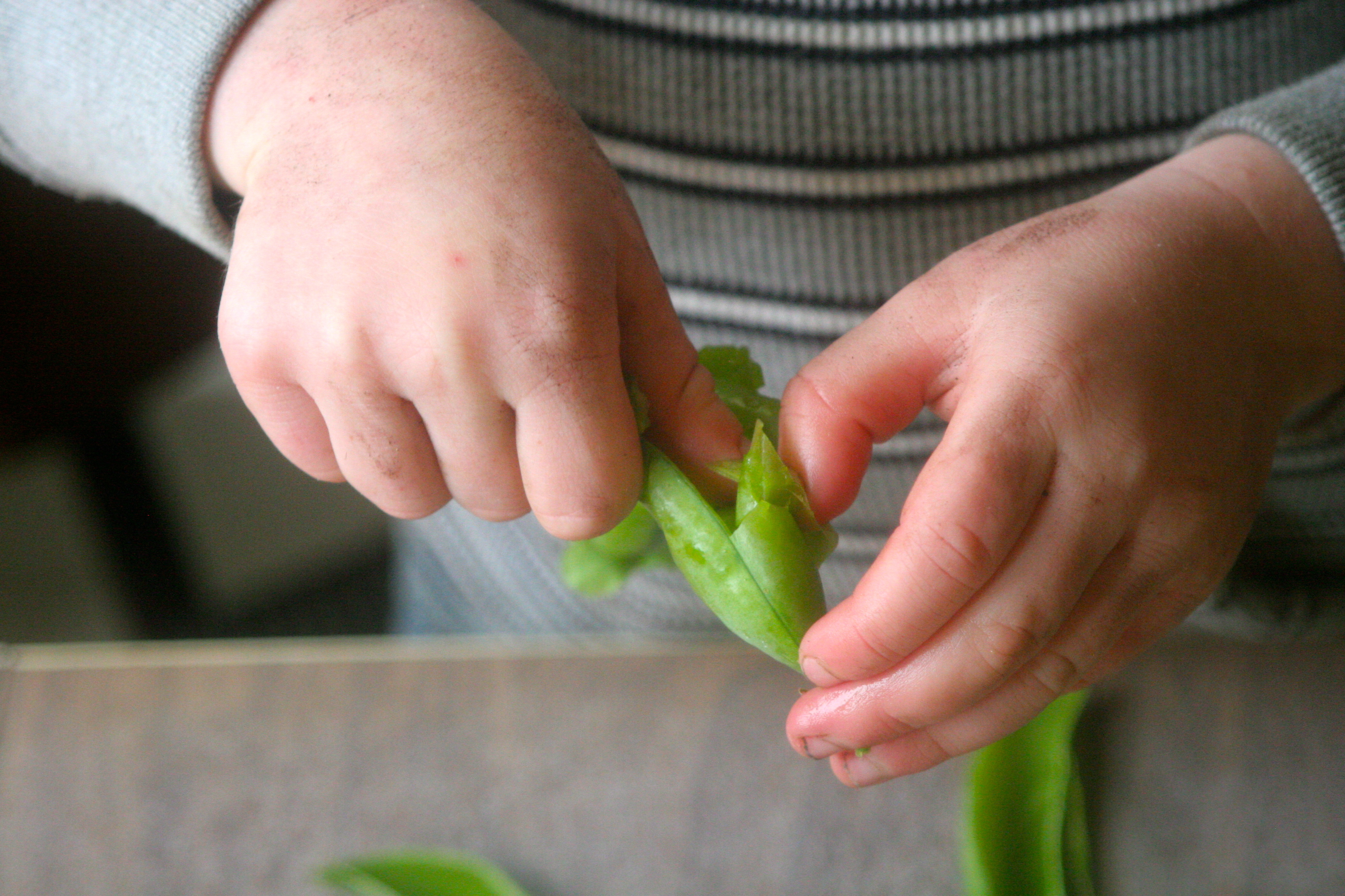 We planted our peas in February and counted every milestone we could invent: First sprout poking through the ground. The number of peas shoots that made it past the onslaught of slugs and snails in the first two weeks. The first tendrils to curl themselves around our fence. The first lightly scented white blossom. And finally our first full pea-pod. I never dreamed that each of the “Tall Telephone Garden Pea” seeds we ordered in the winter would live up to their name.