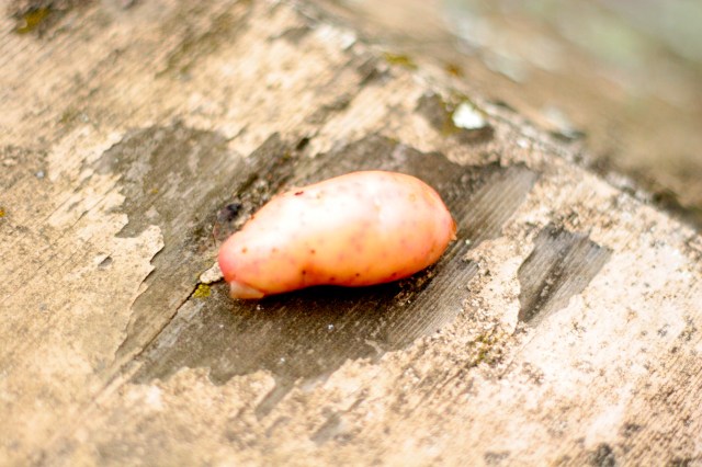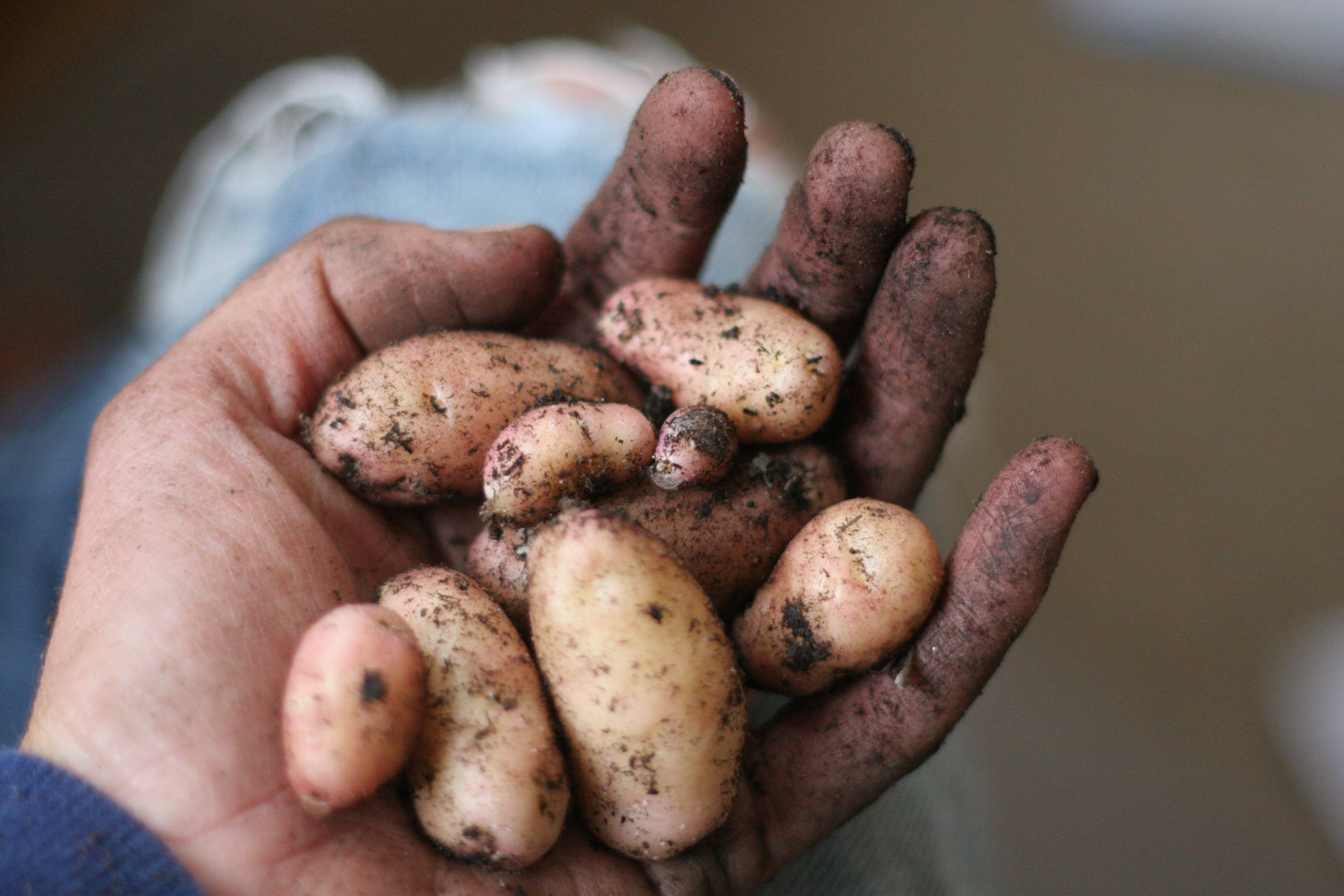 For those of you who do not know how potatoes grow, they are extremely interesting. First of all, they are really economical. One pound of seed potatoes will yield about ten pounds to harvest. We planted five pounds at the beginning of the spring. After allowing them to “chit” near a sunny window (enable the first sprouts to poke out of the eyes of the potato), I planted my tiny little fingerlings. After the plants grew six or eight inches tall, I covered all but the very tops of the plants with more soil (“eathing up”) and repeated this three or four times every time the plants grew tall again until right before we left for Europe. From one tiny bit of potato a tuber grows to develop more than a dozen new potatoes. It is phenomenal.
