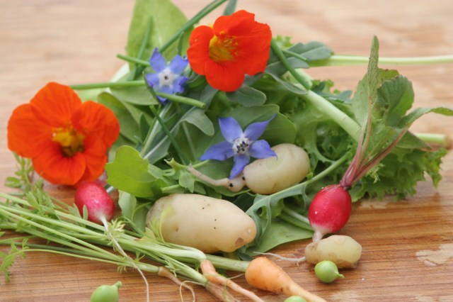 New potatoes, which you can get from your farmer’s market between now and the early fall are one of life’s big treats. In all honesty, I have never been a huge potato person. I eschew mashed potatoes during the holidays and I would almost always prefer bread, pasta, sweet potatoes, rice, you-name-it, for my starch. I changed my mind last year when we received new potatoes in one of our Mystery Boxes from Mariquita Farm. The skin is so fragile and thin and the potatoes so new that they really give meaning to the old axiom that potatoes taste “buttery.” They need minimal cooking and adornment. After cooking them briefly in some salted water, I let them cool and dress them with my new favorite olive oil and sea salt. I then add the rest of my salad ingredients and finish with just a bit of vinegar. I am already eyeing the next tuber that I will take down and I have big plans for each and every one. In fact, I just ordered five more pounds of potatoes to plant for a fall harvest which arrived today.
